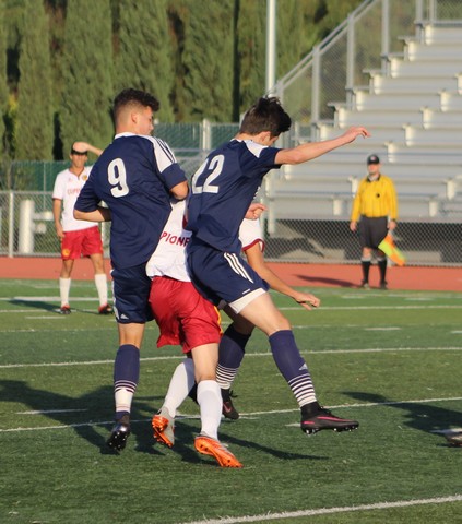 Isiah Baron and Ryan Jordan defend together against Cupertino player.